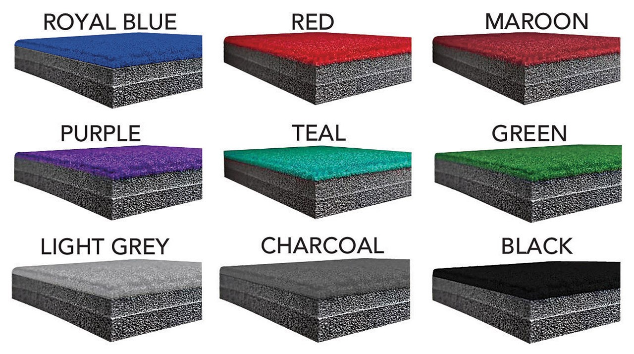 Black, Charcoal, Gray, Maroon, Red, Royal Blue, Teal, Purple, Green
