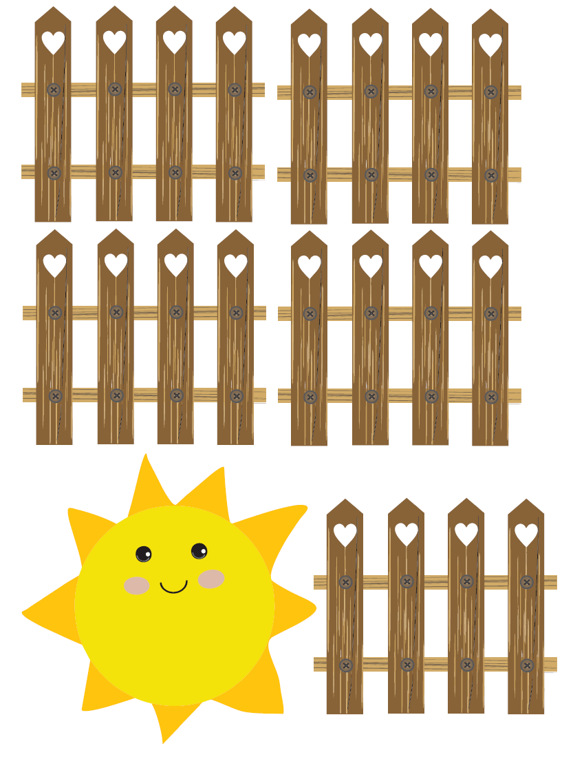 - Colorful Fence with heart cut outs and Sun